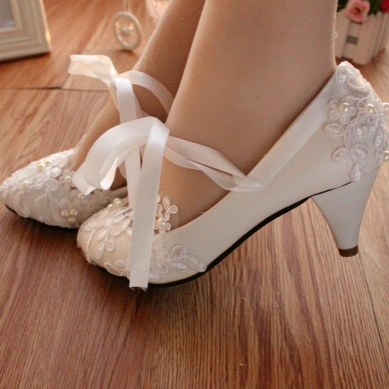 Модные белые свадебные туфли на высоком каблуке-рюмочке, женские туфли-лодочки на каблуке, лакированная кожа, кружевные аппликации, бисерные свадебные туфли