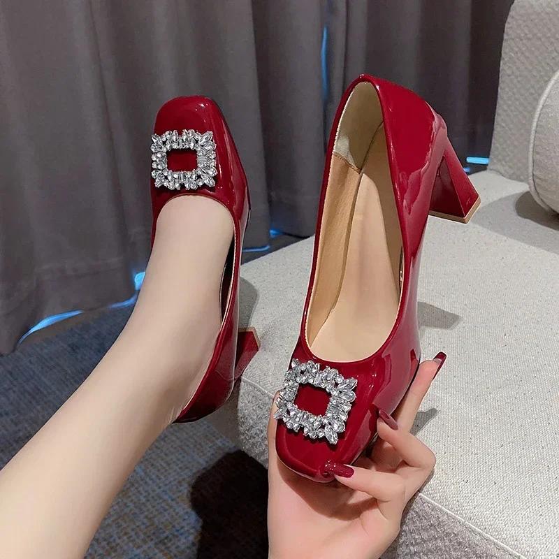 Женские туфли класса люкс Crystal Marie Janes, весенние туфли на высоком каблуке, новые модные туфли-лодочки 2024 года, дизайнерские женские туфли с квадратным носком Zapatos Shallow — купить товар онлайн с бесплатной доставкой по всему миру!