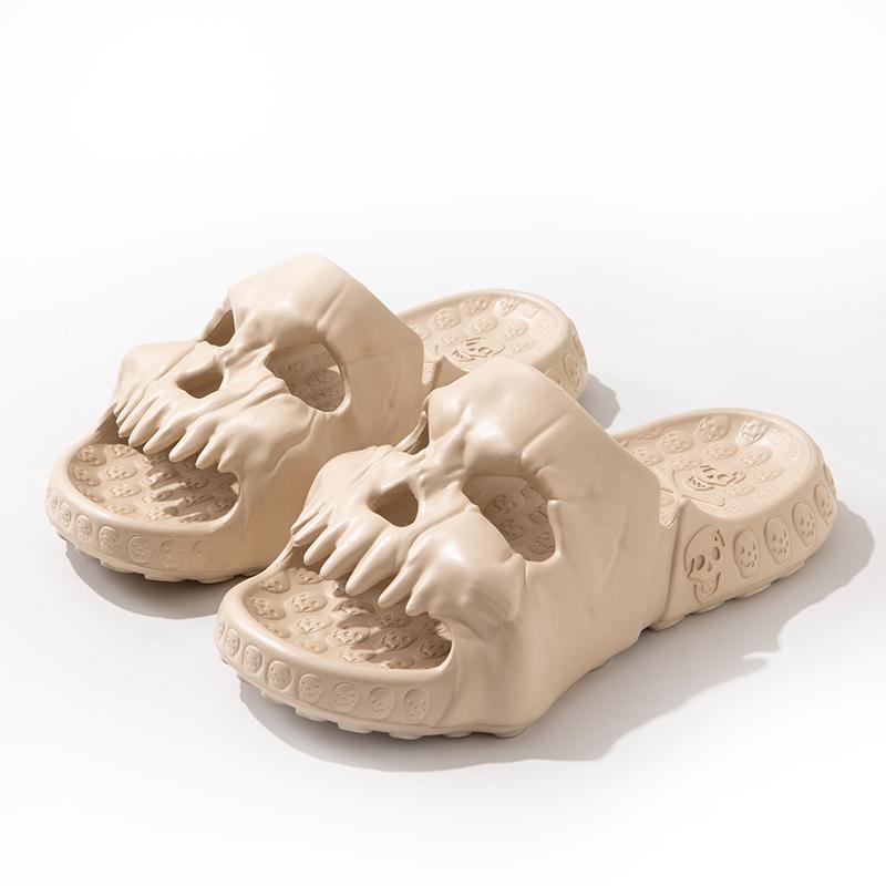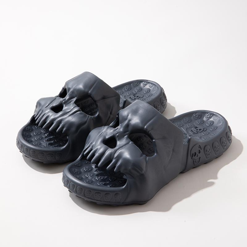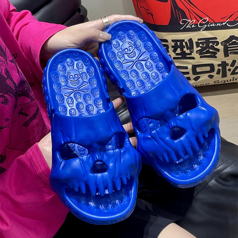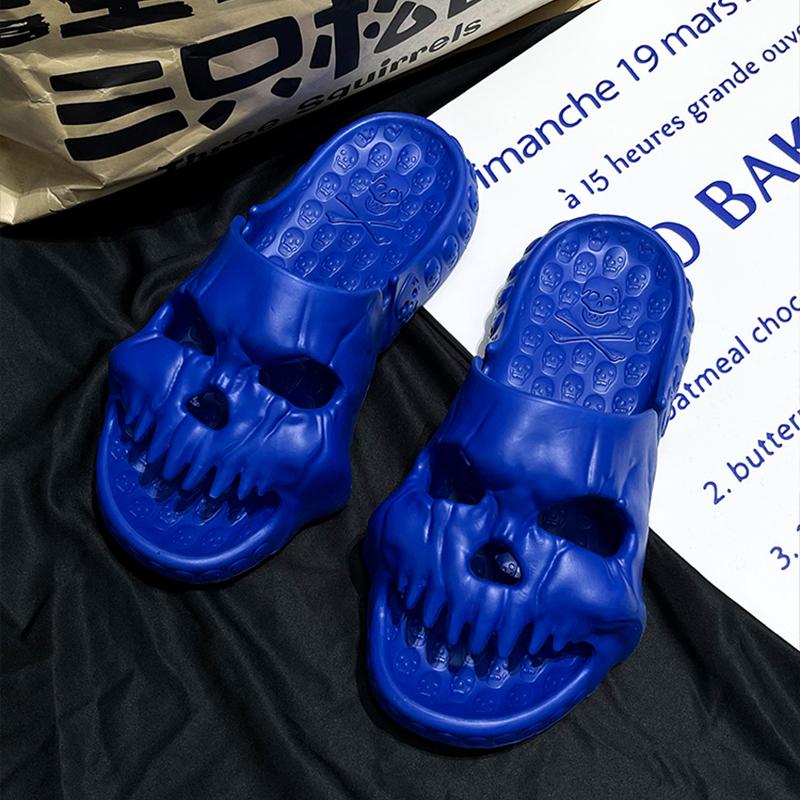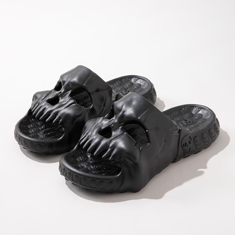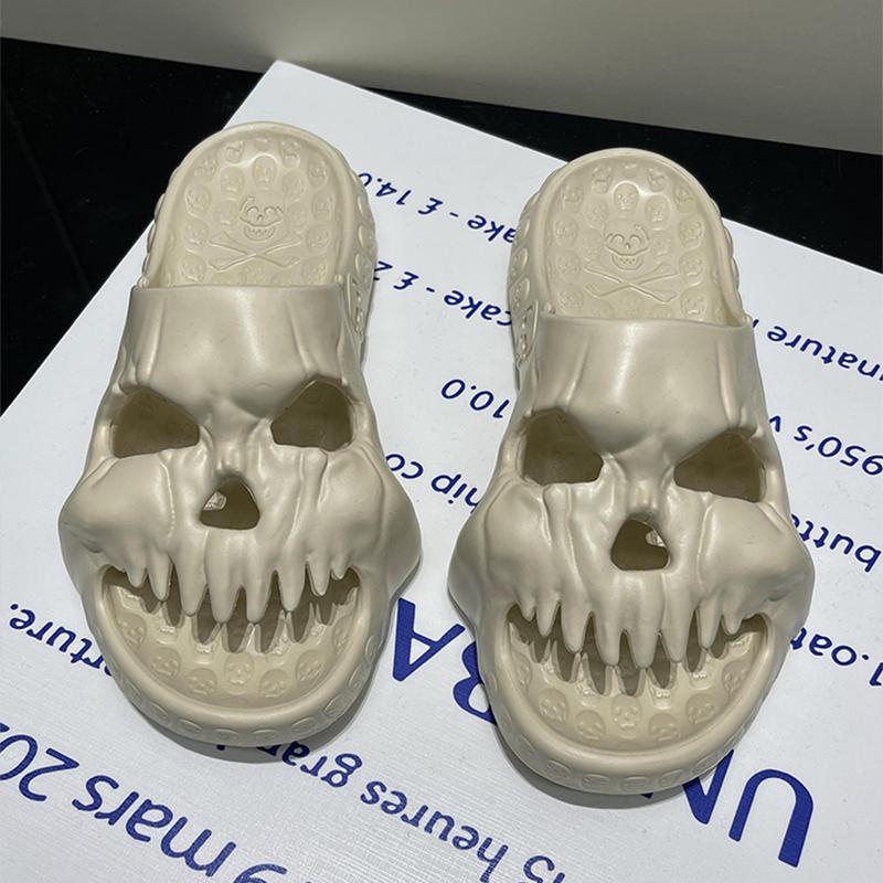 Крутые персонализированные дизайнерские мужские и женские тапочки с черепом 2024 года, летние уличные шлепанцы с толстой подошвой, пляжные мужские сандалии на платформе для отдыха