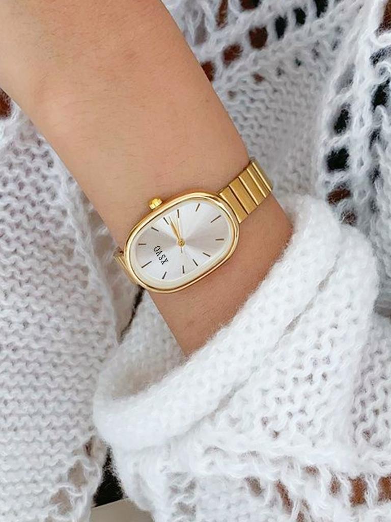 Новые золотые винтажные нишевые часы высокого класса, популярные часы, маленькие золотые часы, женские кварцевые часы со стальным браслетом
