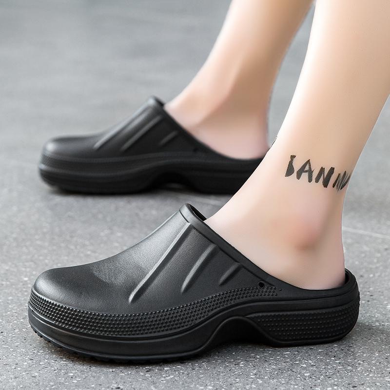 Мужские и женские летние черные сандалии на плоской подошве на платформе тапочки для дома и улицы башмаки поварская обувь медсестра докторская обувь повседневная обувь для сада