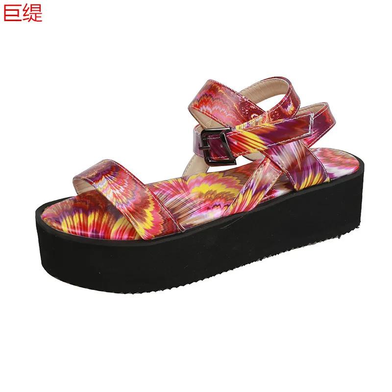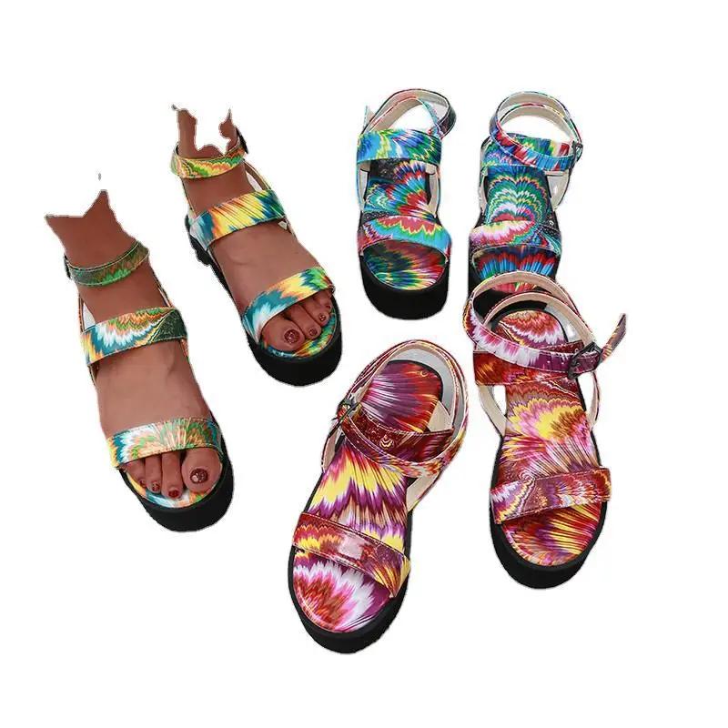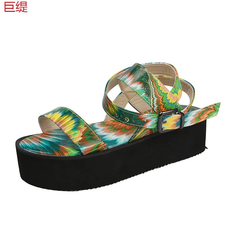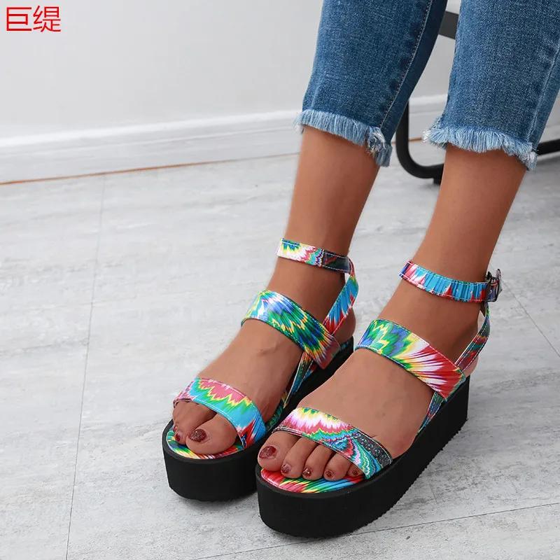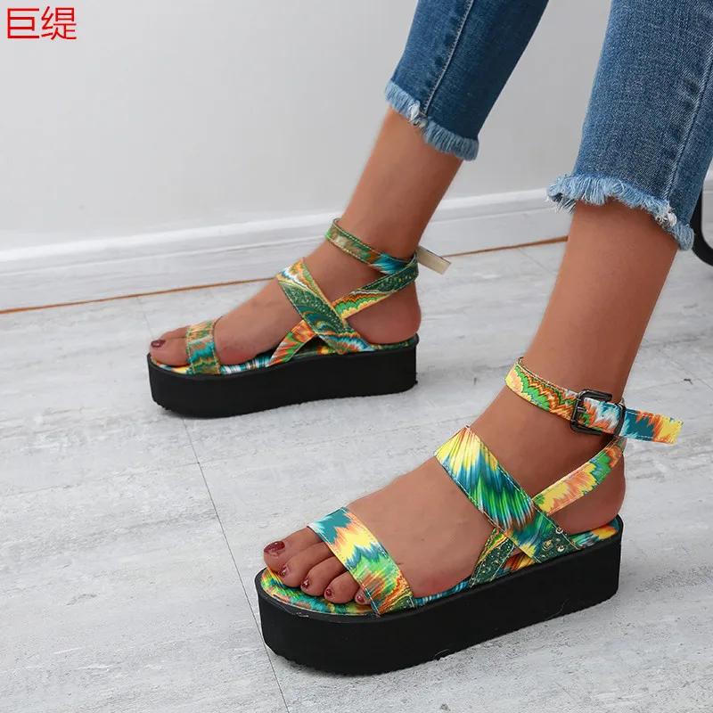 Женские сандалии с ремешком на щиколотке, женские сандалии на плоской платформе, летние женские удобные модные туфли смешанных цветов, женская обувь больших размеров