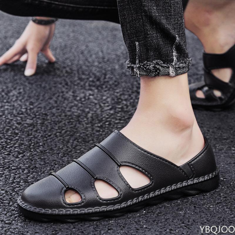 Мужские сандалии, легкие слипоны, тапочки, мужские дышащие нескользящие пляжные туфли с мягкой подошвой и закрытым носком, водная обувь на плоской подошве