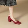 Женские красные туфли-лодочки на каблуках средней толщины с квадратным носком, элегантные женские туфли на каблуках без застежек, свадебные туфли из мягкой кожи