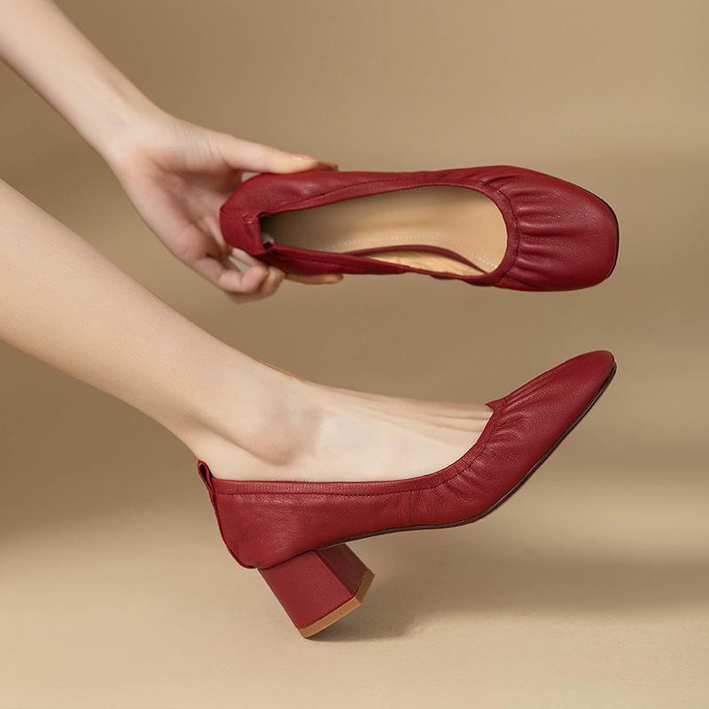 Женские красные туфли-лодочки на каблуках средней толщины с квадратным носком, элегантные женские туфли на каблуках без застежек, свадебные туфли из мягкой кожи — купить товар онлайн с бесплатной доставкой по всему миру!
