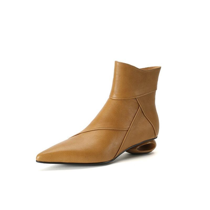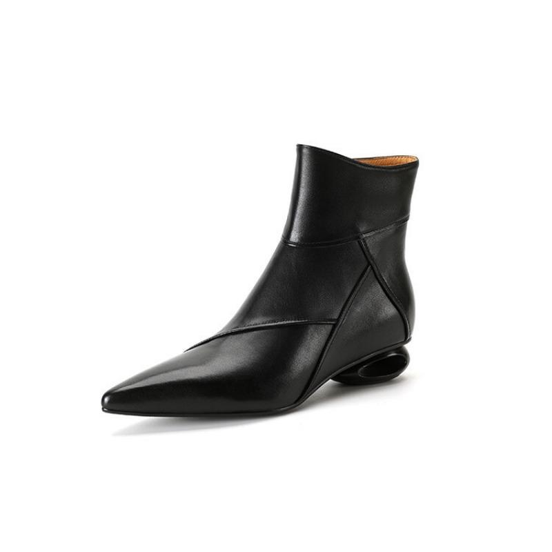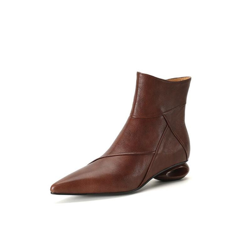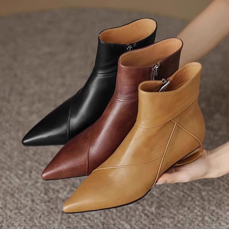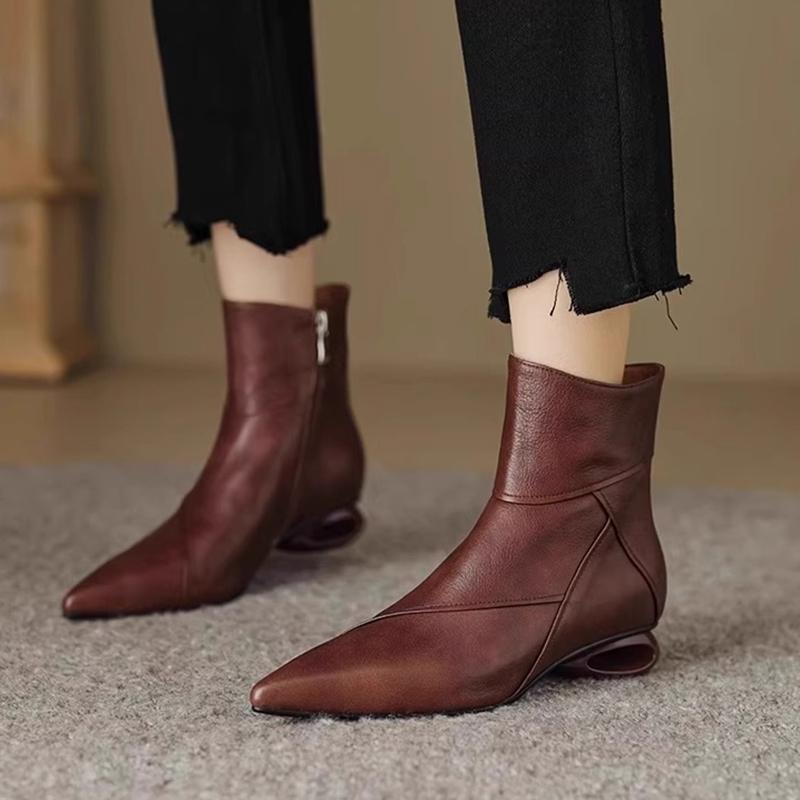 Ботильоны в стиле ретро с острым носком во французском стиле, женские туфли на каблуке, с боковой молнией, кожаные туфли, осень-зима, однотонные, темпераментные, короткие ботинки