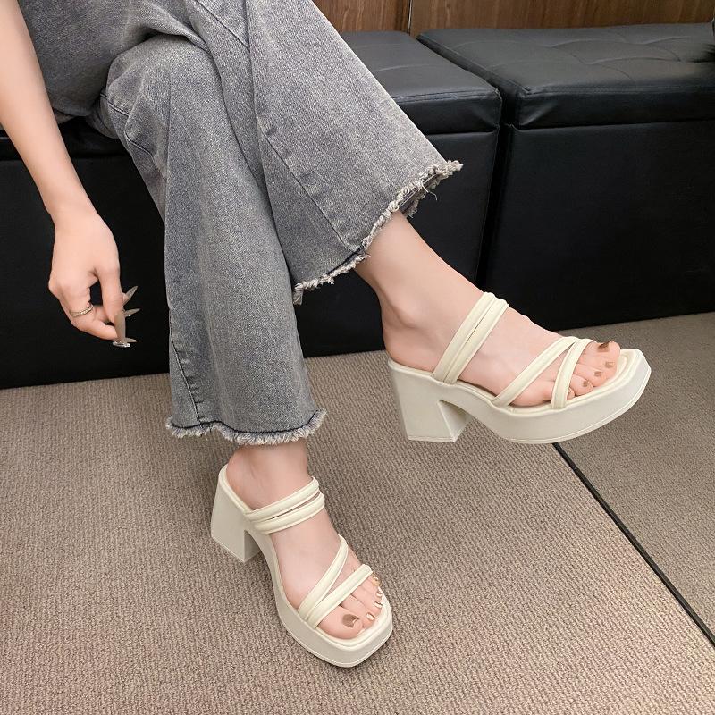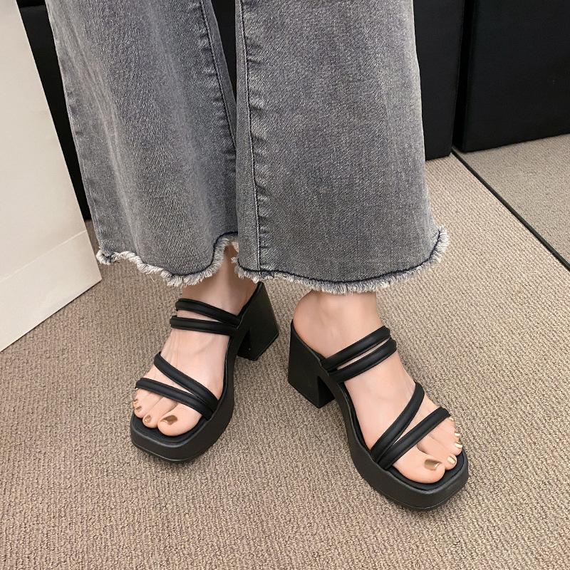 Женские сандалии на квадратном каблуке, элегантные летние тапочки, женские шлепанцы с перекрестной шнуровкой, модные женские сандалии 2024 года