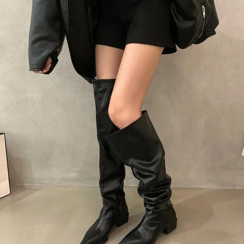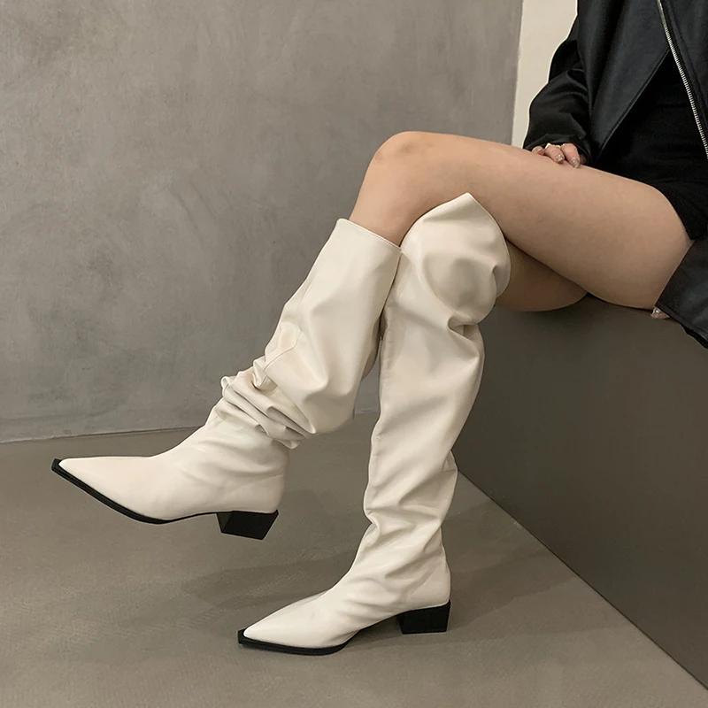 Женские сапоги-рыцари с острым носком, коричневые сапоги из искусственной кожи до колена, женские сапоги в стиле вестерн-ковбой, длинные, Botas Mujer 2024