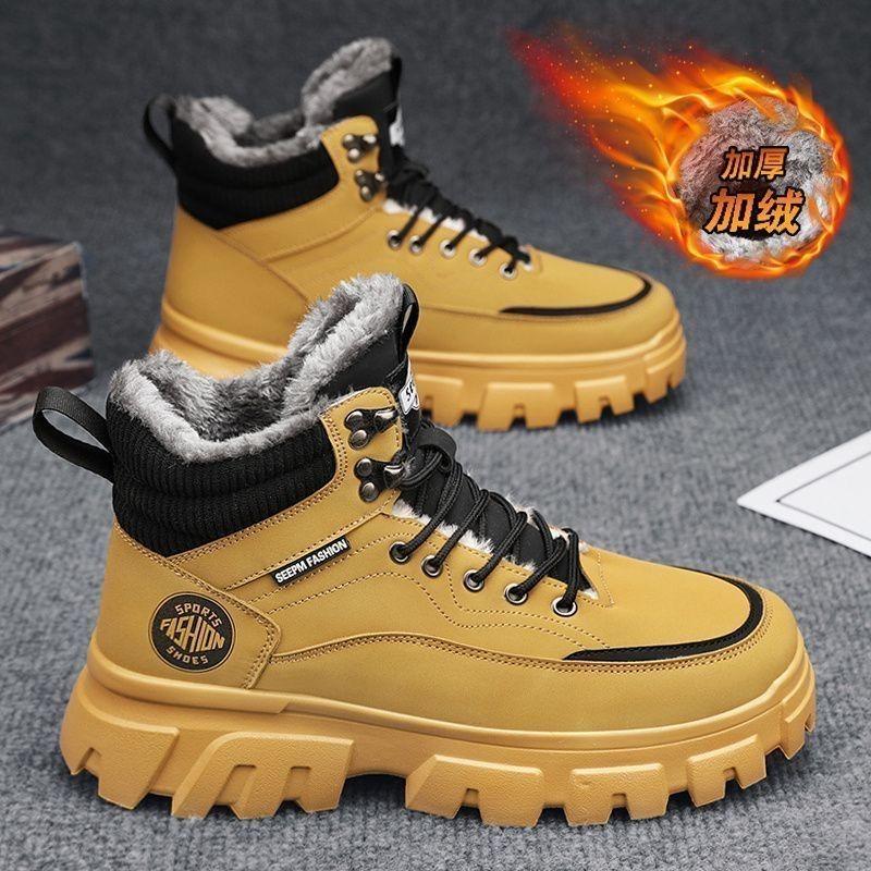 Зимние модные мужские ботинки для отдыха на открытом воздухе с утолщенной изоляцией повседневная обувь для мужчин удобные высокие желтые ботинки Botas Para Hombre