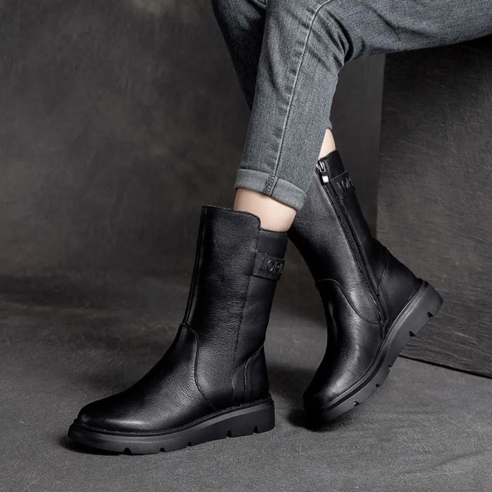 Зима 2024 Осень Элегантные Женские Полусапожки на Низком Каблуке Распродажа Моды Новые Удобные Женские Туфли До Середины Икры — купить товар онлайн с бесплатной доставкой до всему миру!