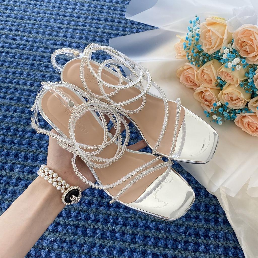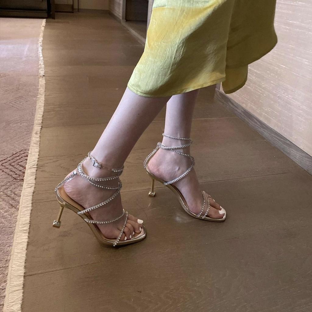 Сандалии женские со стразами, лето 2024, сексуальная обувь с открытым носком, тонкие каблуки, женская обувь, сандалии на шпильках для вечеринок и свадеб с бриллиантами