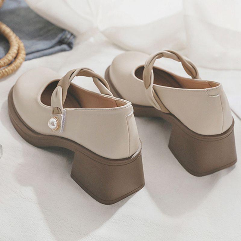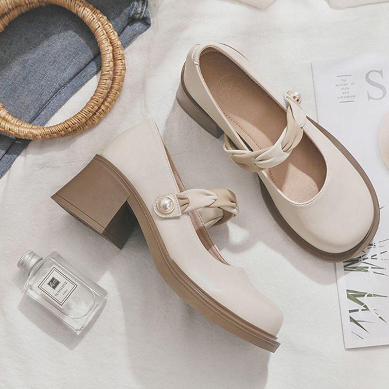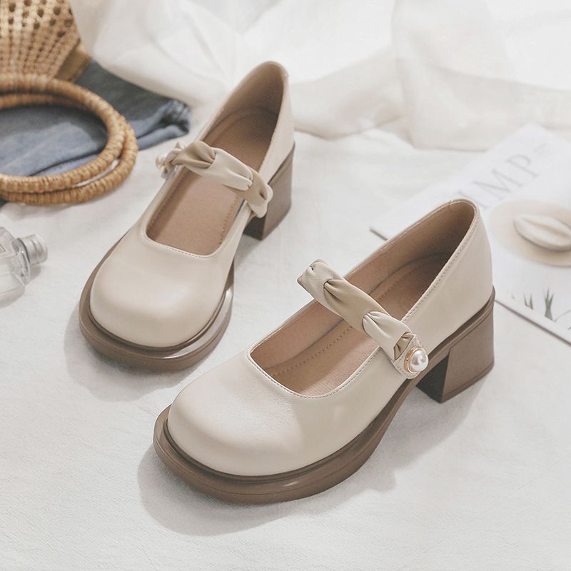 Женская летняя обувь в японском стиле Лолита Туфли для женщин 2024 Туфли-лодочки на квадратном каблуке с круглым носком Туфли Мэри Джейн на платформе Готический жемчуг