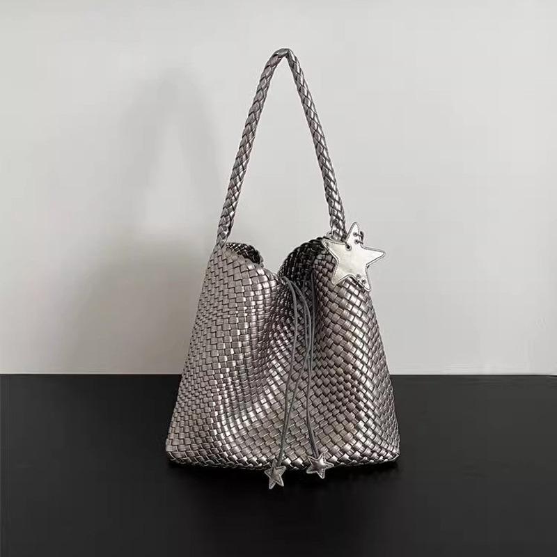 Золотая сумка ручной вязки, сумка-ведро, женская, высококлассная, изысканная маленькая сумка для ношения в руке, универсальная сумка-тоут для работы и повседневной носки — купить товар онлайн с бесплатной доставкой по всему миру!