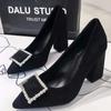 Туфли для женщин 2024 года, супер-высокие каблуки, женская летняя обувь с кристаллами, квадратный каблук, черный, со стразами, бриллиантами, офисная, стильная А