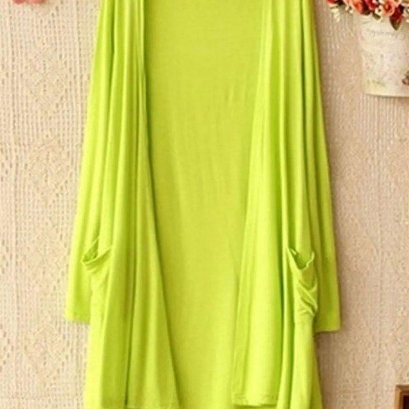 2023 Summer Women Midi Long Cardigan Jacket Casual Pocket Ir