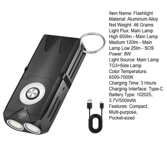 Ультракомпактный дизайн: Этот карманный фонарик-брелок, изготовленный из прочного алюминиевого сплава, отличается элегантным и компактным дизайном, идеально подходящим для повседневного ношения.. Легко положите его в карман или сумку для освещения в дороге без лишнего объема.