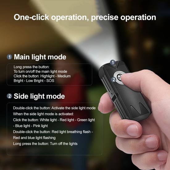 Многоцелевой рабочий свет: Универсальный и практичный, этот карманный фонарик разработан для многофункционального использования.. Легко переключайтесь между рабочим светом, аварийным маяком или кемпинговым фонарем, что делает его незаменимым инструментом для различных повседневных ситуаций.