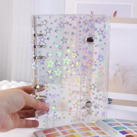 Представляем обложку для блокнота на кольцах, восхитительный аксессуар с очаровательным дизайном в виде звездного узора, который понравится девочкам.. Этот альбом с наклейками также является декоративным элементом, идеально подходящим для украшения ноутбуков или столов.. Его съемная конструкция позволяет легко настраивать его, позволяя без труда вставлять, вынимать и перемещать наклейки и карточки..