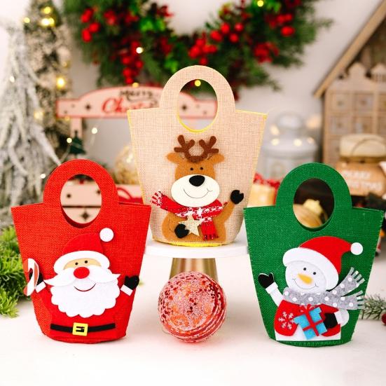 Эта сумочка, изготовленная из премиальной утолщенной нетканой ткани, отличается прочностью и упругостью, устойчивостью к разрывам и деформации.. Его прочная грузоподъемность позволяет надежно разместить различные подарки, такие как конфеты, игрушки и яблоки.. Эти яркие сумочки с дизайнами Санты, лося и снеговика мгновенно создают радостную атмосферу.
