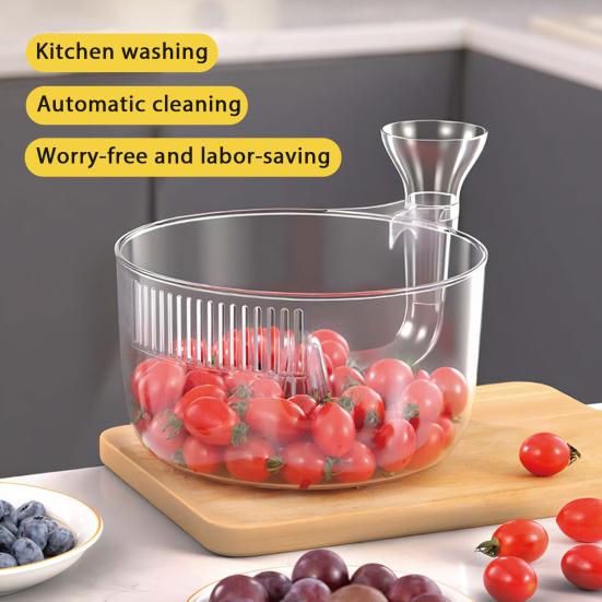Эффективная очистка и разделение воды: Вращающаяся конструкция обеспечивает тщательную очистку ваших продуктов, а фильтрующая секция эффективно отделяет воду от фруктов и овощей, оптимизируя ваш кухонный рабочий процесс.