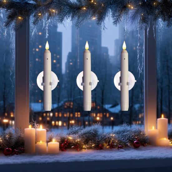 Надежное крепление на присоске: Каждая светодиодная оконная свеча оснащена надежной присоской для легкой и безопасной установки на окна, что исключает риск опрокидывания или запутывания в шторах, и идеально подходит для различных типов окон, включая окна от пола до потолка или узкие подоконники.