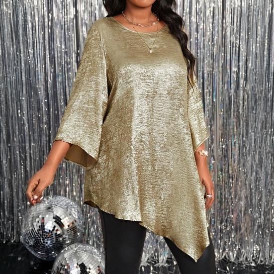 Элегантный дизайн: Подчеркните изысканность этим топом элегантного дизайна с круглым вырезом, длинными рукавами и легкой блестящей текстурой.. Его простота излучает оттенок класса, подходящий для различных случаев.