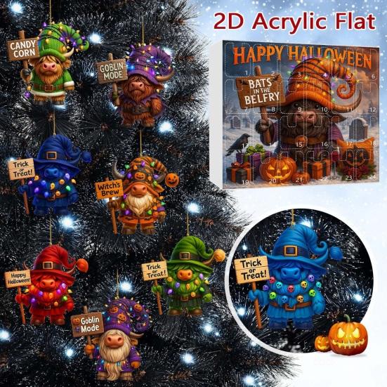 Мистический обратный отсчет: Откройте ежедневный Хэллоуин-сюрприз с 24 искусно выполненными 2D акриловыми подвесками, каждая из которых скрывает уникальное угощение на тему Хэллоуина.