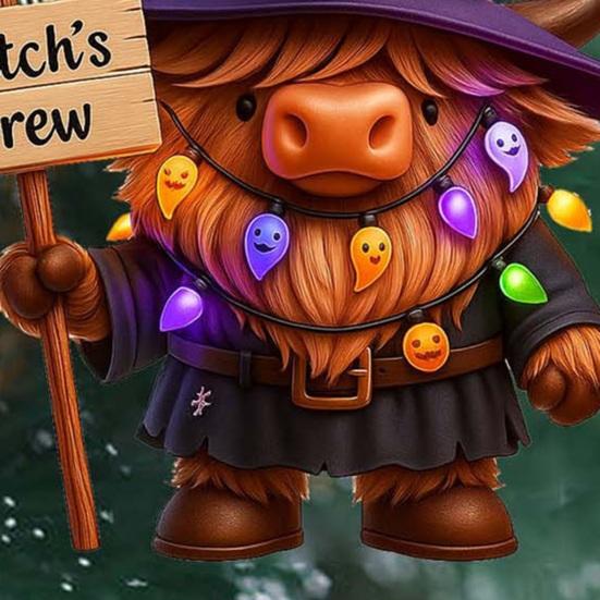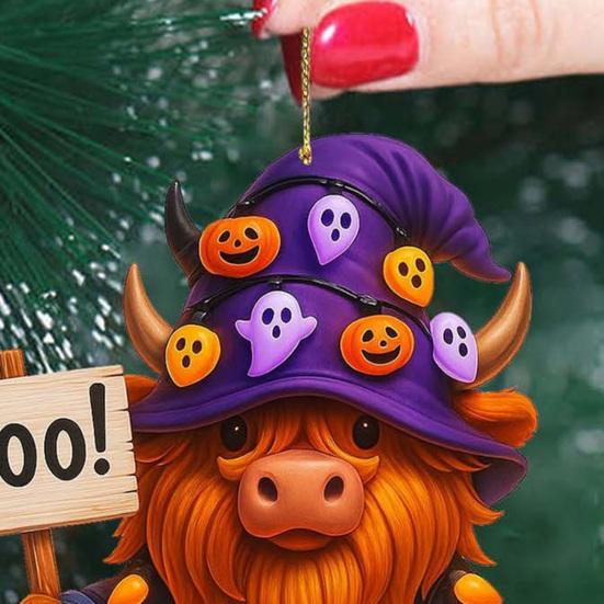 Декоративная элегантность: Усильте атмосферу Хэллоуина этим ярким узором с горной коровой, украшающим этот важный предмет для коллекционеров.. Идеально для добавления нотки таинственности в любое пространство наряду с тыквами, скелетами или готическим декором.