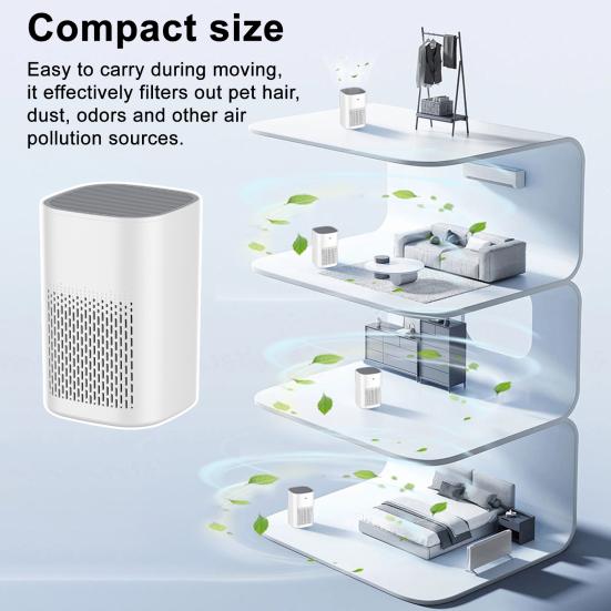 Универсальный настольный дизайн: Этот очиститель воздуха оснащен встроенным HEPA-фильтром класса H13, эффективно устраняющим вторичный табачный дым, запахи, пыль, частицы PM2.5 и многое другое.. Обновите ваше пространство, очищенный воздух для более чистой и здоровой атмосферы.