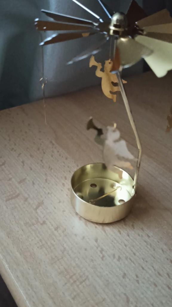Создайте уютную атмосферу с мягким светом чайных свечей, освещающих карусельный топпер.. Во время вращения вокруг отбрасываются очаровательные тени и мерцающие огни, создавая расслабляющую атмосферу или добавляя праздничное настроение собраниям.. Ищете уникальную идею подарка? Удивите своих близких этой волшебной вращающейся каруселью для свечей. Это продуманный выбор для тех, кто ценит отличительный домашний декор, привносящий радость и очарование в их жизнь.
