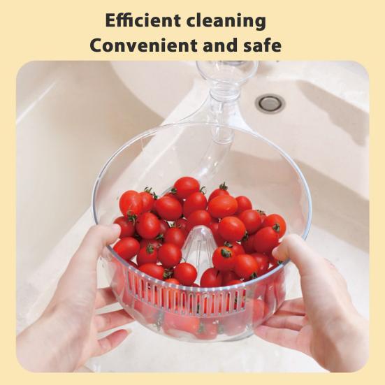 Эффективная очистка и разделение воды: Вращающаяся конструкция обеспечивает тщательную очистку ваших продуктов, а фильтрующая секция эффективно отделяет воду от фруктов и овощей, оптимизируя ваш кухонный рабочий процесс.