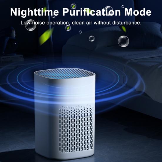 Оснащенный технологией двойной очистки воздуха, этот настольный очиститель обеспечивает активную глубокую очистку, эффективно адсорбируя пыль и устраняя запахи.. Встроенный HEPA-фильтр класса H13 нацелен на вторичный табачный дым, частицы PM2.5 и пыль, способствуя свежести и циркуляции чистого воздуха.