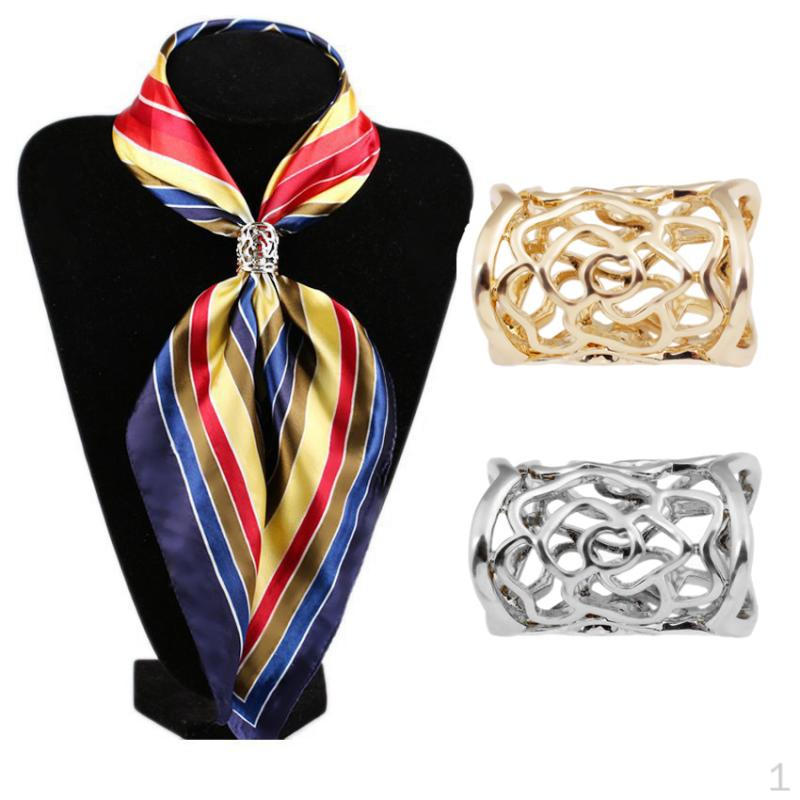 2 шт. Винтажный полый цветок розы Кольцо для шарфа Зажим Слайд-пряжка Серебро Золото