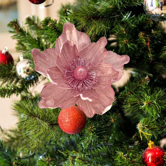 Блестящая текстура: Каждый цветок имеет нежную блестящую отделку, которая красиво мерцает на свету, усиливая общее великолепие и сказочную ауру ваших рождественских украшений.