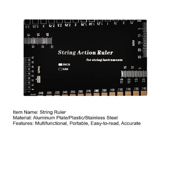 Улучшите настройку своей гитары с помощью этой легко читаемой измерительной линейки. Благодаря четким шкалам и тексту для быстрых и точных показаний высоты струн, эта линейка обеспечивает точные измерения с подробными единицами в дюймах и миллиметрах..