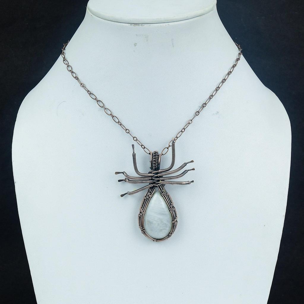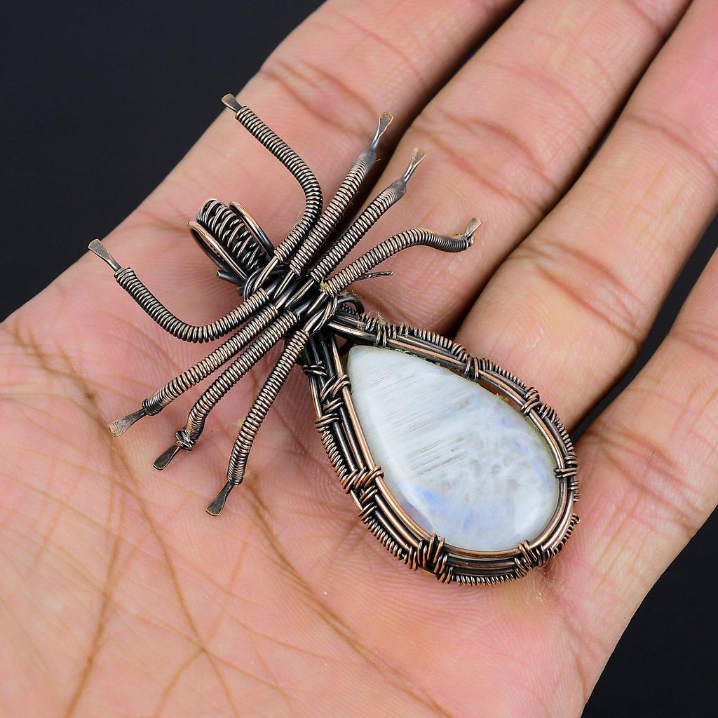 Подвеска из радужного лунного камня, ювелирное изделие из драгоценного камня, подвеска, обернутая медной проволокой 999 пробы, красивая подвеска ручной работы