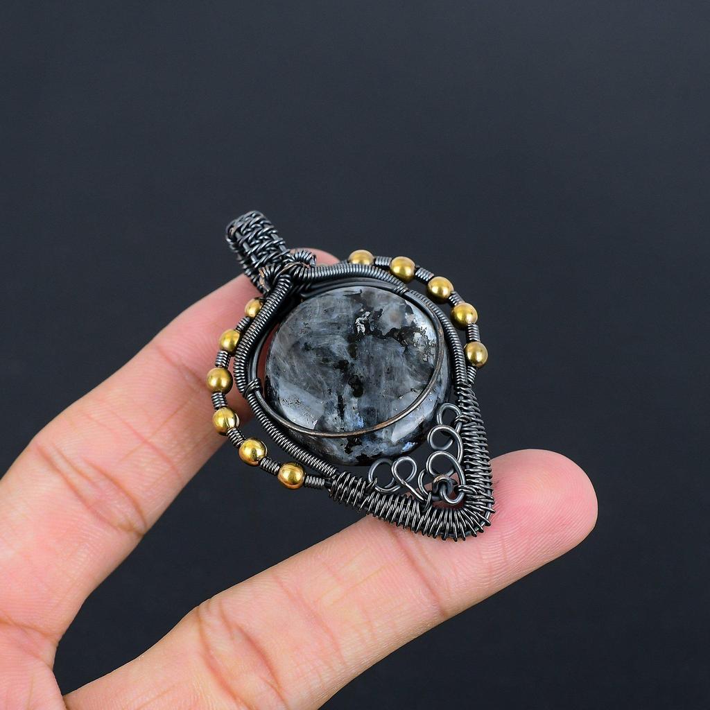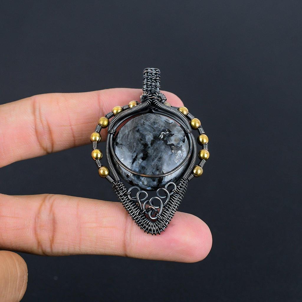 Кулон из лабрадорита, ювелирное изделие из драгоценного камня ручной работы, кулон, обернутый медной проволокой 999 пробы, кулон с уникальным дизайном