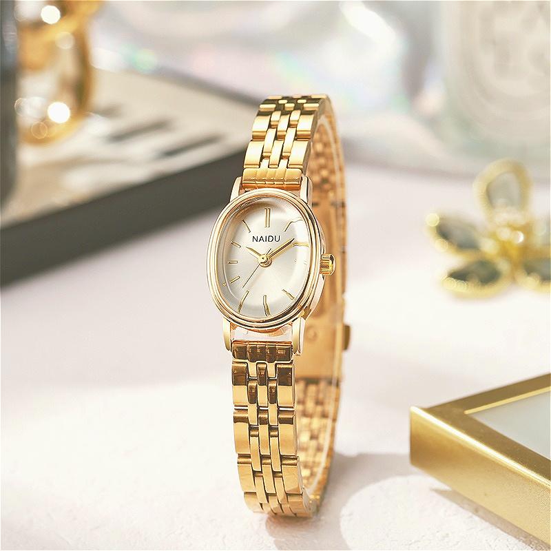 Винтажный стиль Мода Овальный циферблат Кварцевые часы Стальной ремешок Стрелочные Цифровые Наручные часы Женские Часы