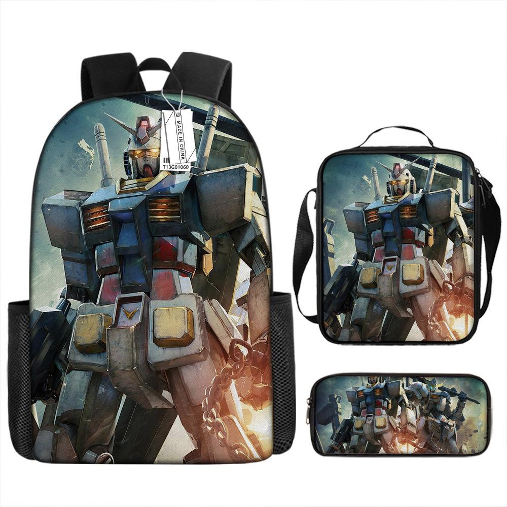 Школьный рюкзак Gundam Mecha для мальчиков и учеников начальной школы, сверхлегкий рюкзак с защитой от ударов, детский рюкзак в стиле анимации, набор из трех предметов.