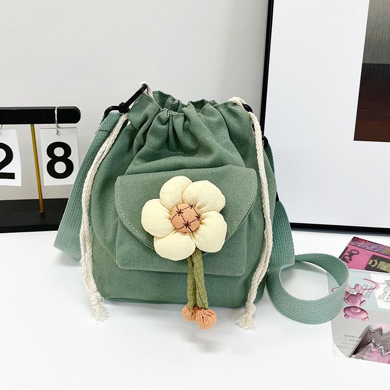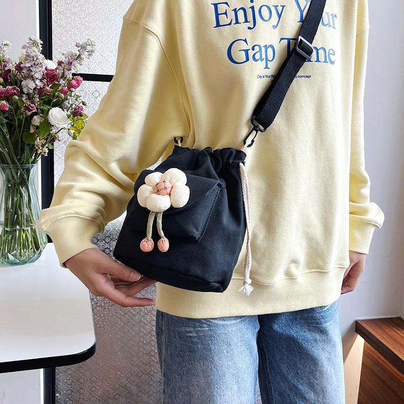 Повседневная универсальная наплечная сумка женская сумка маленькая свежая сумка-ведро на шнурке милая цветочная холщовая сумка-мессенджер