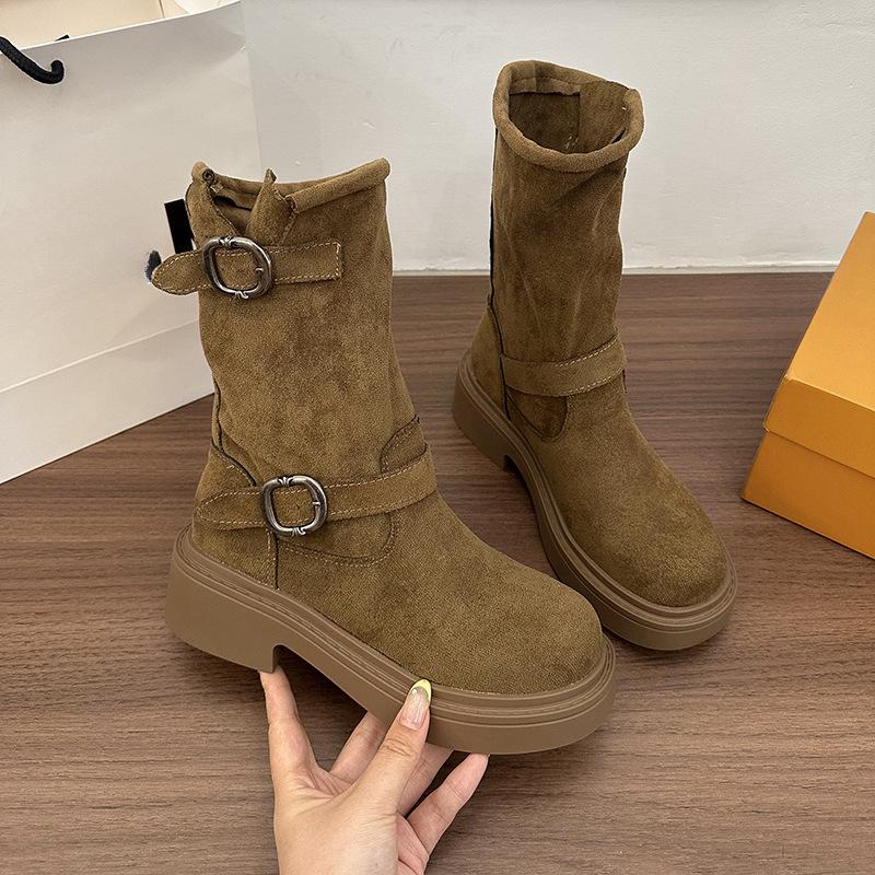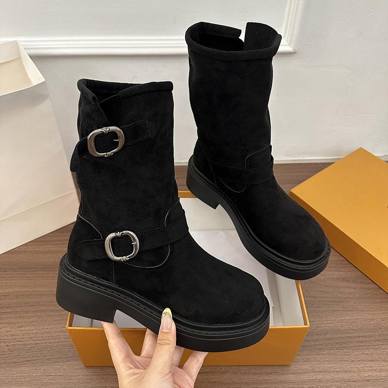 Новая женская обувь, одинарные ботинки, новые ботинки на толстой подошве с пряжкой, короткие ботинки Dui Dui
