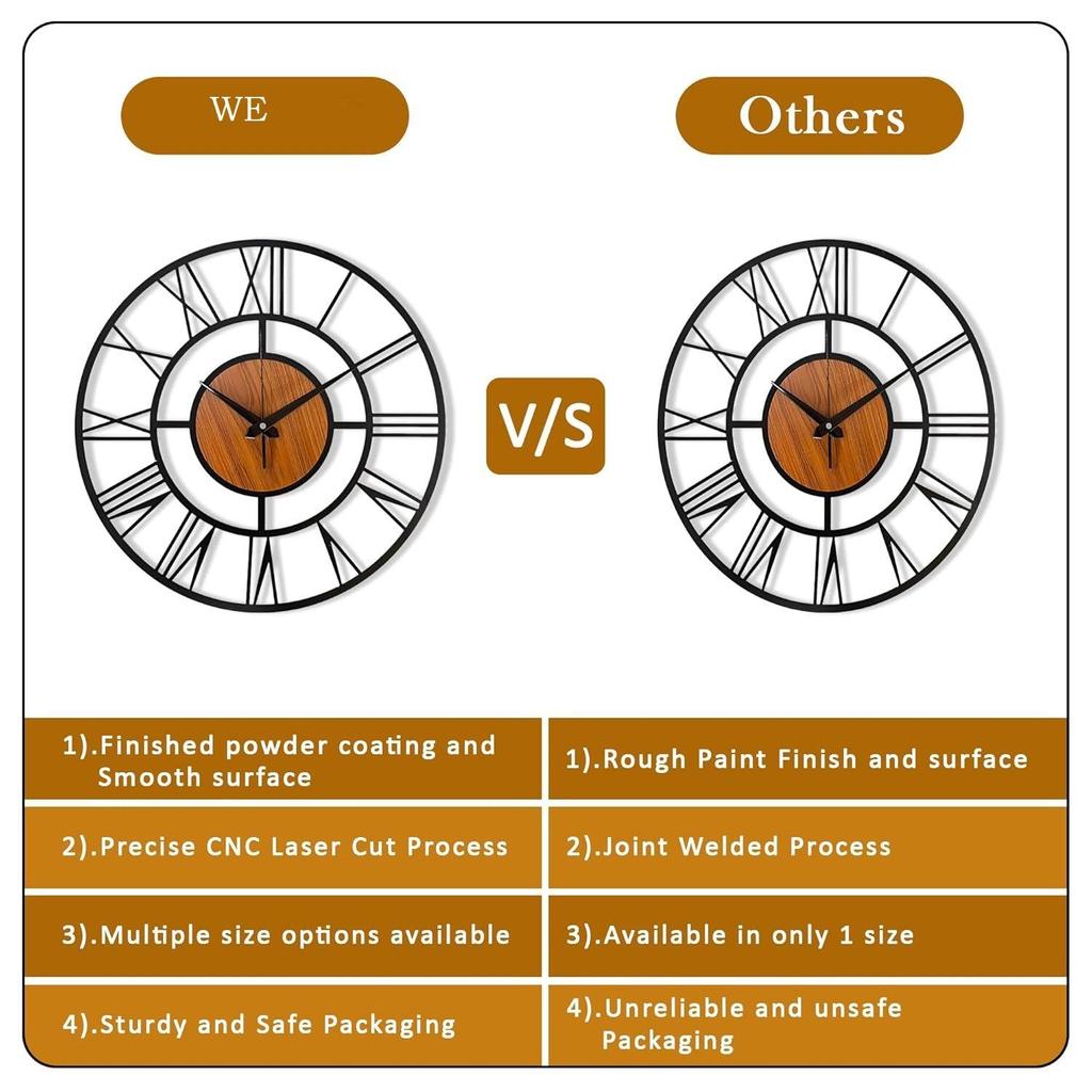 𝗗𝘂𝗿𝗮𝗯𝗹𝗲 & 𝗧𝗶𝗺𝗲𝗹𝗲𝘀𝘀 𝗔𝗽𝗽𝗲𝗮𝗹: Изготовленные из высококачественного металла, эти изысканные настенные часы гарантируют долговечность. Это большая стена