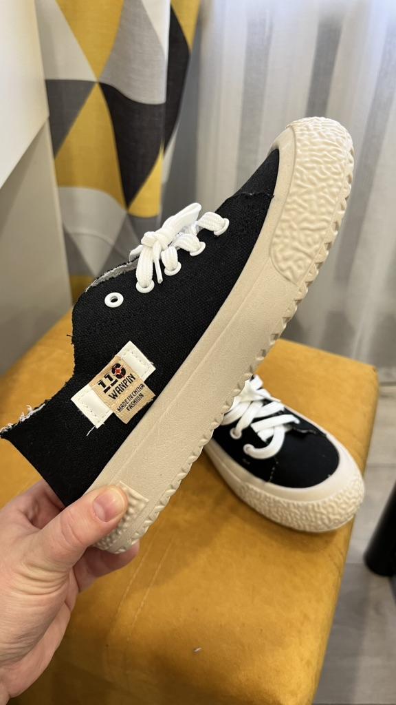 Кеды с необработанным краем ❤️ Отличные и удобные, на достаточно высокой подошве. Качество ткани на высоте. Шнурки чуть коротковаты, сложно завязывать. Есть правда мелкий изъян, который на носку никак не влияет: на одном носке виден наплыв резины. Кеды удобные, не сжимают ногу. На стопу 24,5 см как раз. На стопу 24 см велики, поместится сзади целый палец.