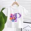 K-pop Охотники на демонов Белая футболка для детей Футболка с буквами от A до Z Топ Мультяшная одежда с круглым вырезом Детская одежда с коротким рукавом Подарок