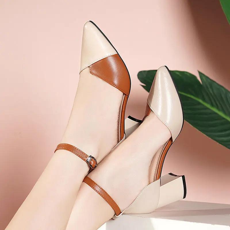 Роскошные летние женские босоножки на толстом каблуке с милой пряжкой 2024 года, женские повседневные черные туфли из искусственной кожи на высоком среднем каблуке