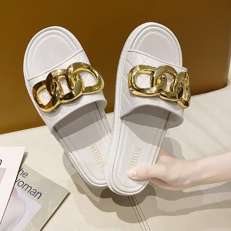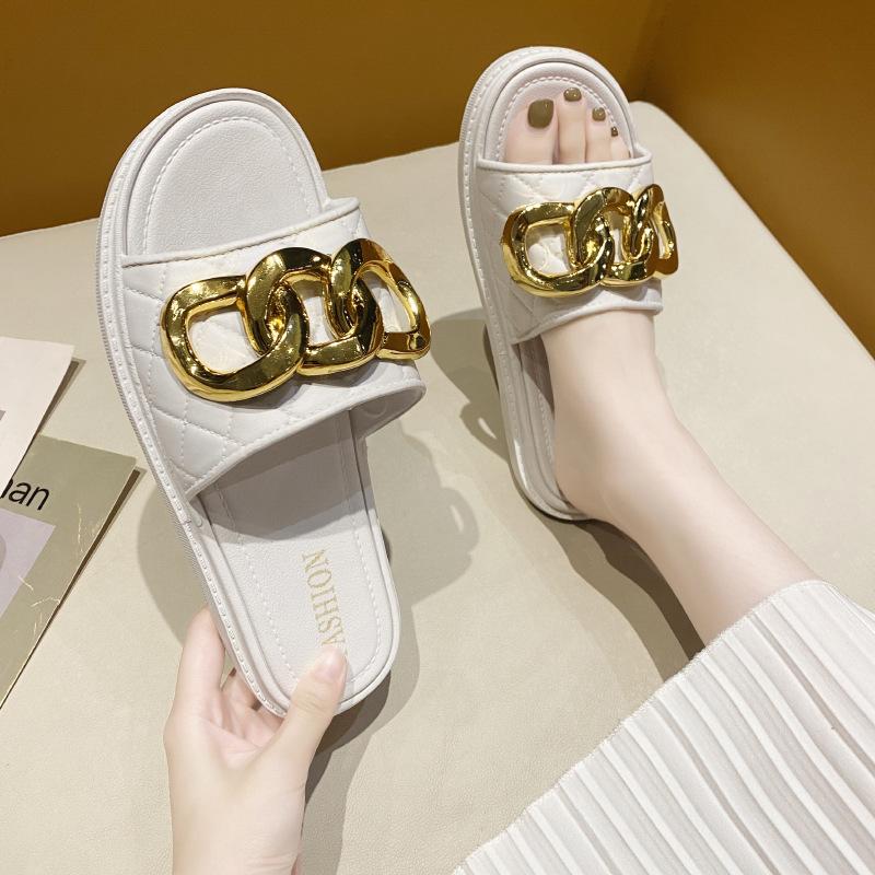 Роскошные летние новые сандалии женские цепные звенья корейская версия уличная одежда для дома и помещения персонализированная пляжная обувь