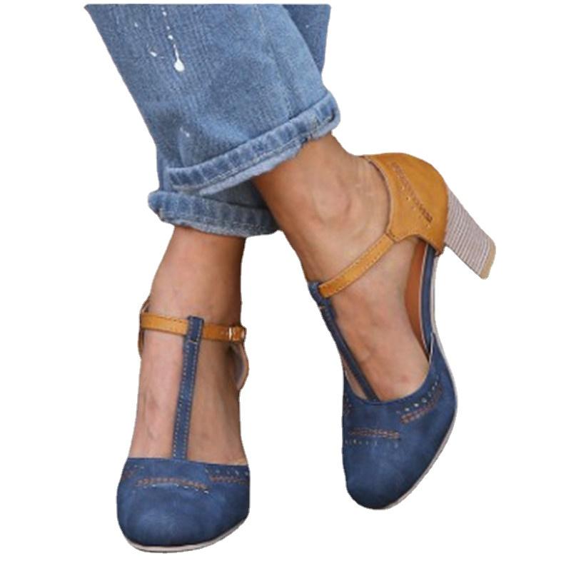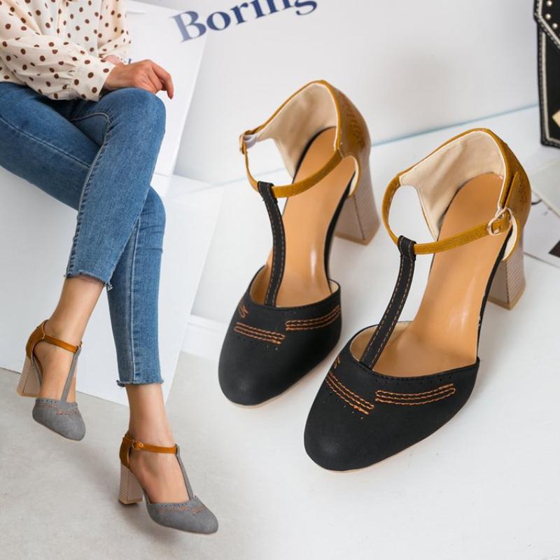 Женские босоножки на высоком каблуке в стиле ретро с круглым носком, цветные, женские, весна-лето 2024 г., новые модные туфли-лодочки на платформе с пряжкой, размеры 35-43
