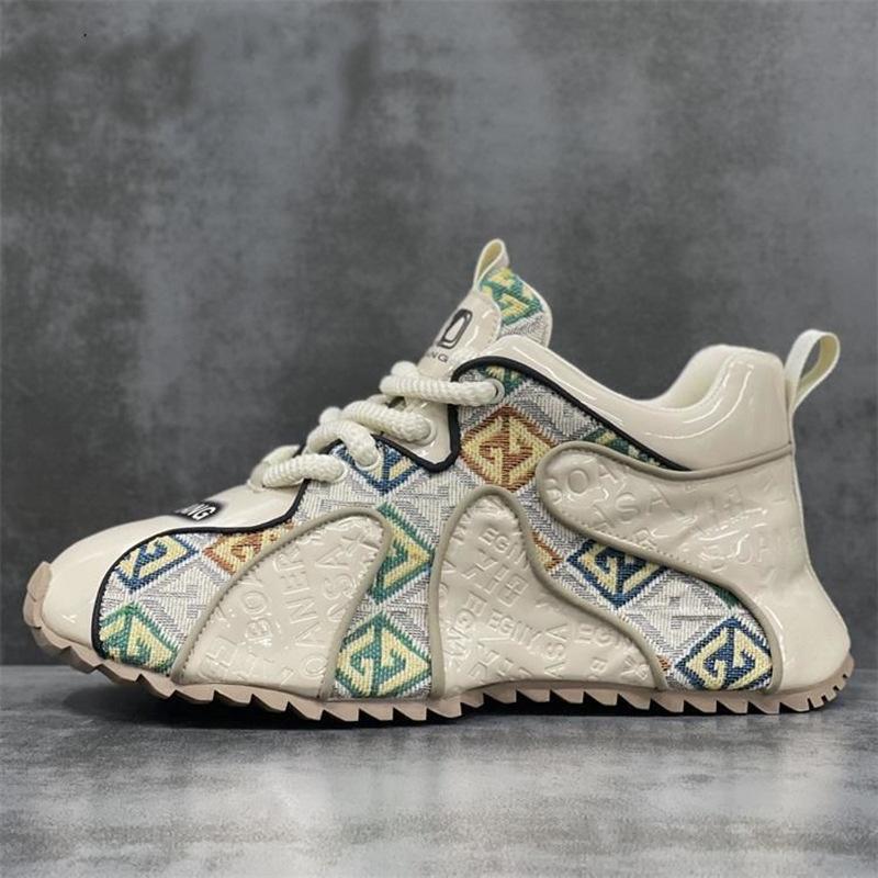 Роскошные 2024 последние сексуальные модные повседневные туфли весна и осень мужские вышитые сплайсированные толстые подошвы легкие спортивные туфли