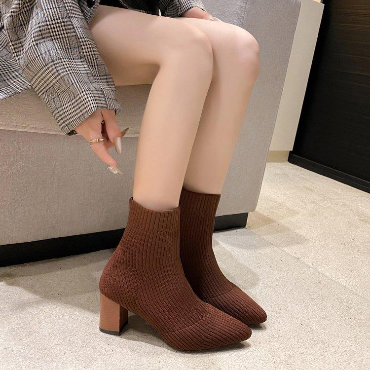 2024 НОВЫЕ женские ботинки на металлическом квадратном каблуке, носки, ботинки, женские, бежевые, повседневные, из эластичной ткани, с острым носком, дышащие