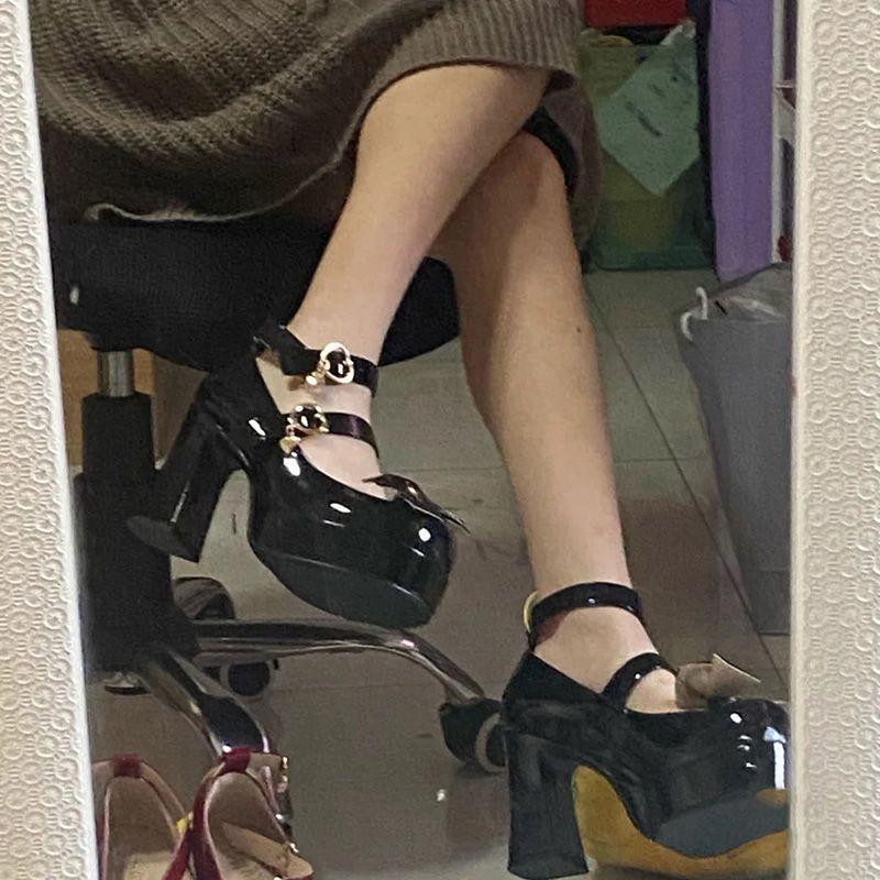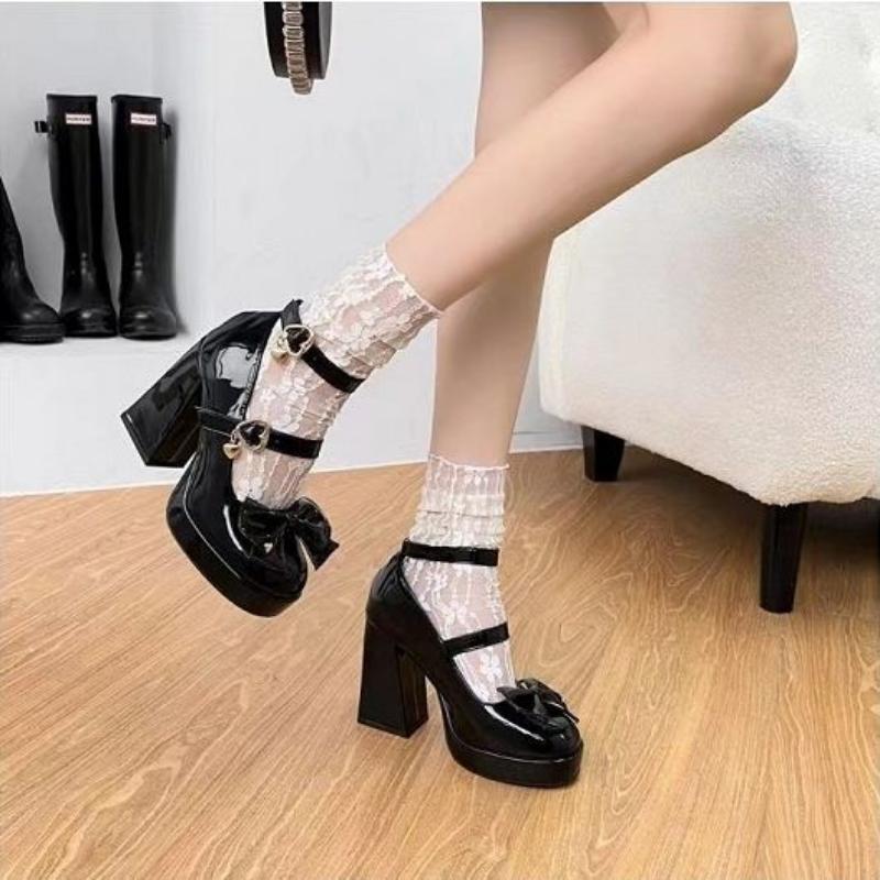 Женские туфли-лодочки Мэри Джейн Лолита Туфли Готические Туфли на платформе и высоком каблуке Женские туфли-лодочки Косплей Харадзюку Черные туфли с бантиками Сердце